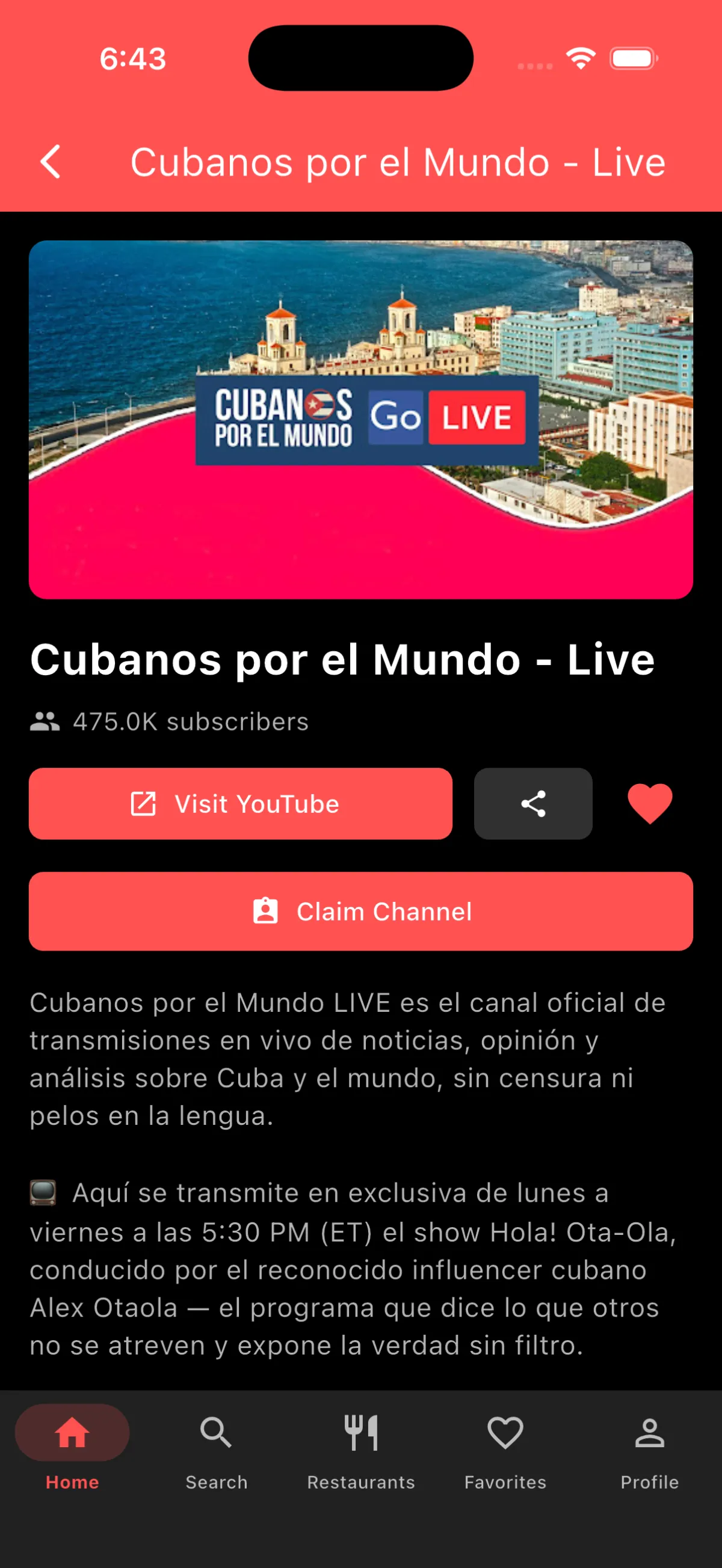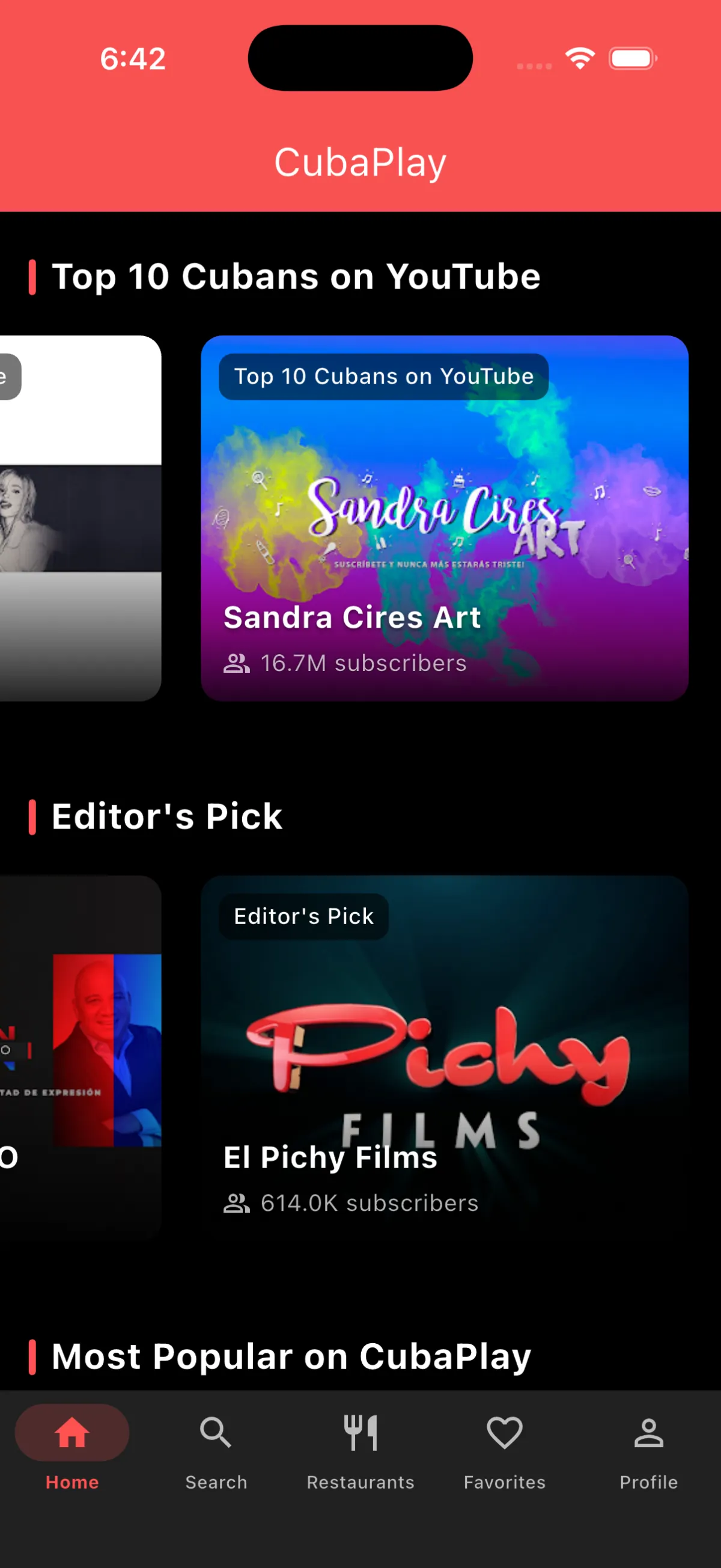 CubaPlay is a unique mobile app created to connect Cubans and fans of Cuban culture around the world. It brings together the most popular Cuban YouTubers and their official channels. Covering music, sports, news, and entertainment. All in one simple platform. We host the largest database of Cuban YouTube channels, featuring over 300 creators and growing every day.